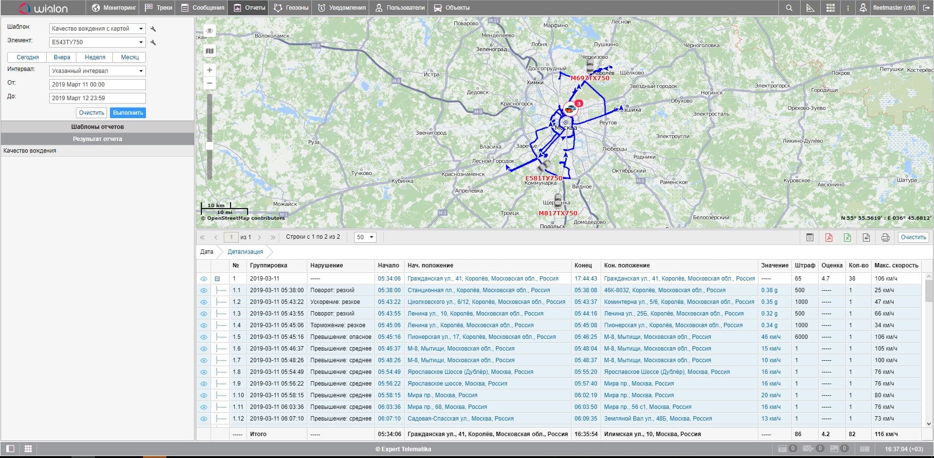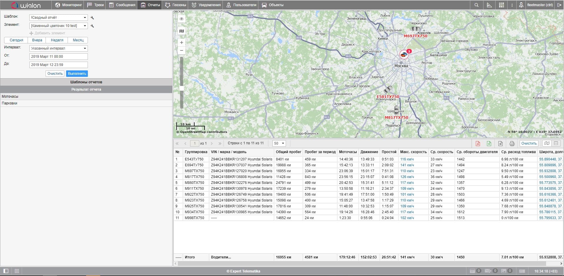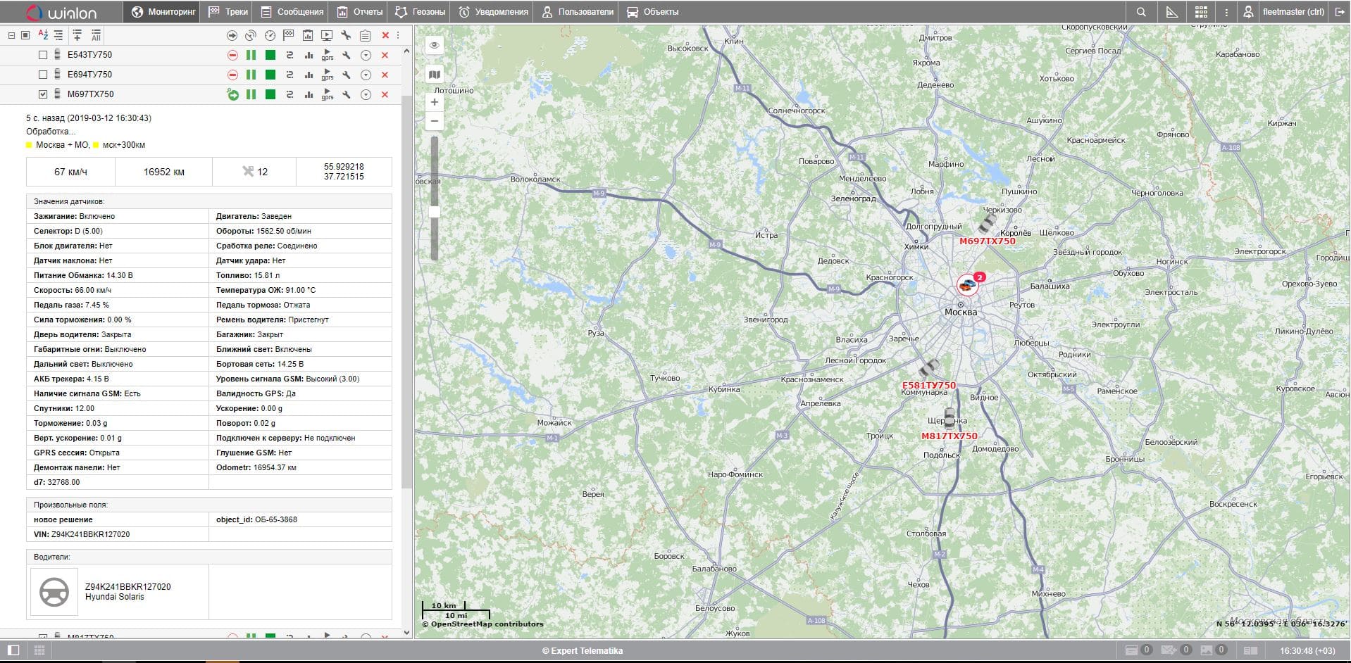 Текущий мониторинг базовых параметров ТС (координаты, скорость, пр.)